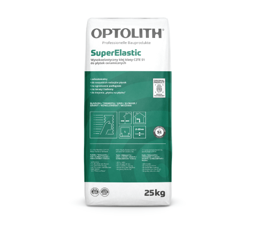 SuperElastic – tai elastingi visų tipų keraminių plytelių klijai. Produktas su padidintais techniniais parametrais, dideliu sukibimu ir ilgaamžiškumu, sumažintu slinkimu ir ilgesniu atviro darbo laiku. Ypač rekomenduojamas šildomoms grindims, terasoms, balkonams, ant hidroizoliacinių dangų, rezervuarams, baseinams, fasadams, ant senų plytelių ir stabiliems pagrindams iš gipso kartono plokščių.